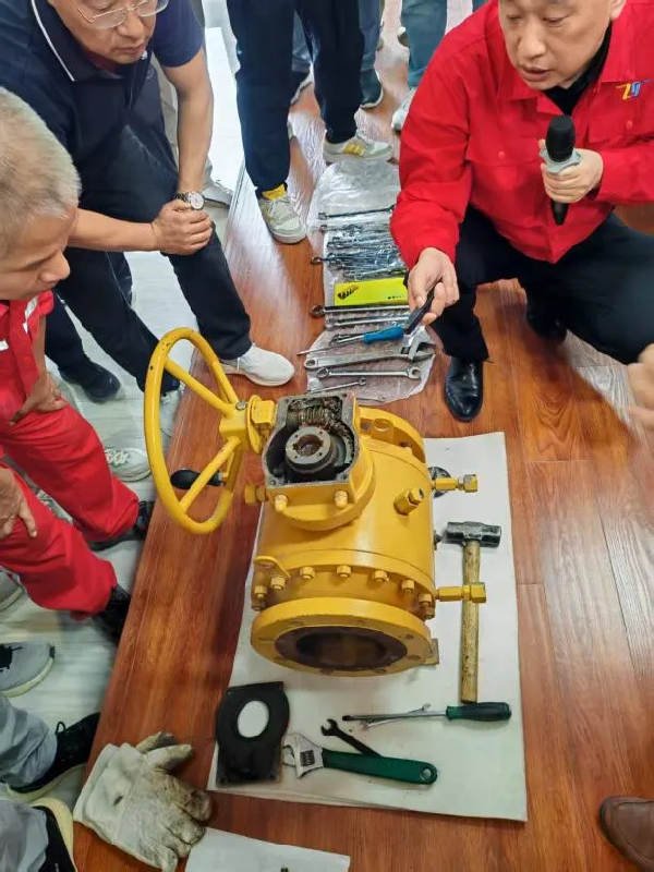 在實操環節,技術人員現場拆解并安裝球閥,詳細展示閥門內部結構與功能特點,重點講解日常維護中的關鍵環節與注意事項,進一步提升操作規范性和安全意識。